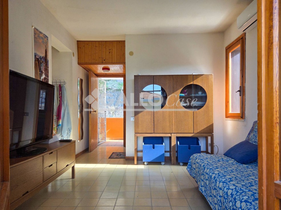 L’immobile è composto da ingresso-soggiorno, cucinotto, due camere da letto, un bagno e terrazzo con vista mare.