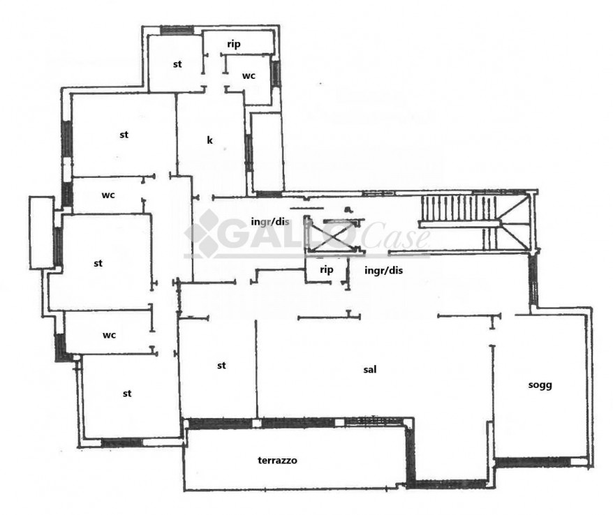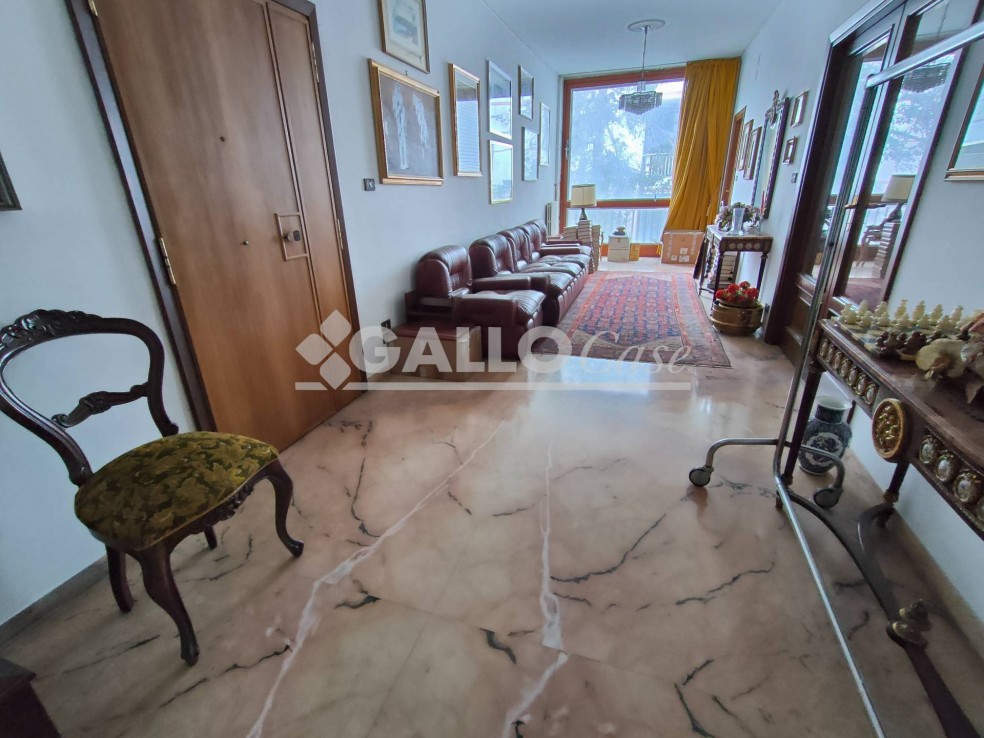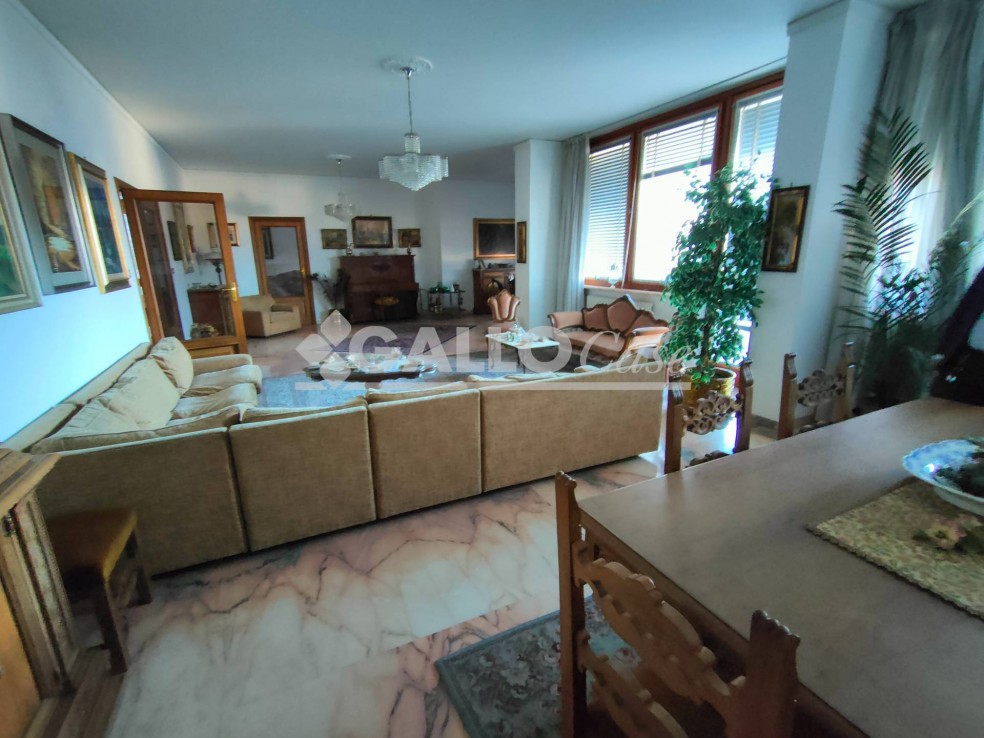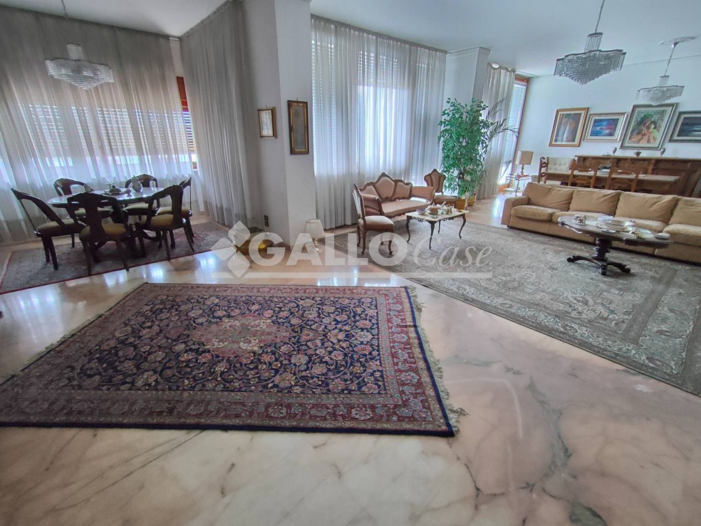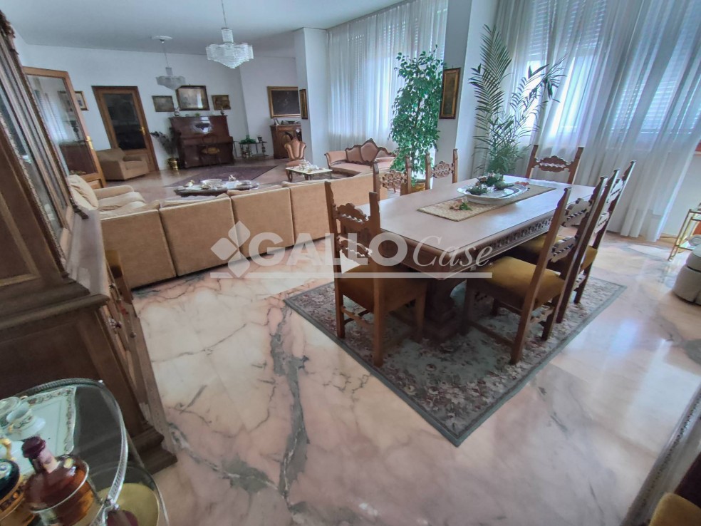 L’unità immobiliare, posto al piano terzo, è composta da doppio ingresso, ampio disimpegno, salone triplo, studio, cucina abitabile con annesso ripostiglio/dispensa, 5 stanze, tre bagni, due balconi ed ampio terrazzo coperto.