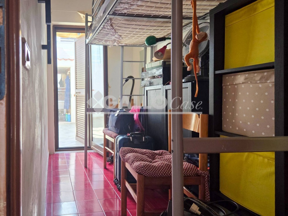 Posto al piano rialzato, l’appartamento è composto da ingresso su soggiorno con cucina a vista, camera, cameretta e bagno.
