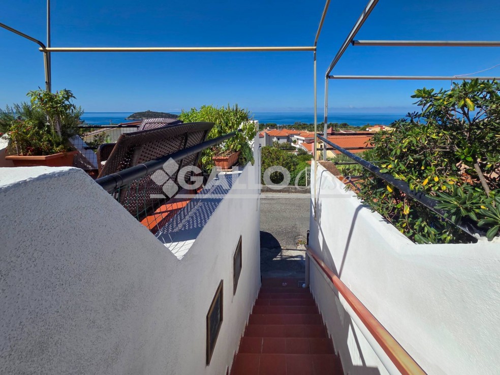 All’esterno dispone di due corti pavimentate: una sul retro con zona lavanderia e doccia esterna, l’altra all’ingresso con splendida vista sul mare e sull’Isola di Cirella.