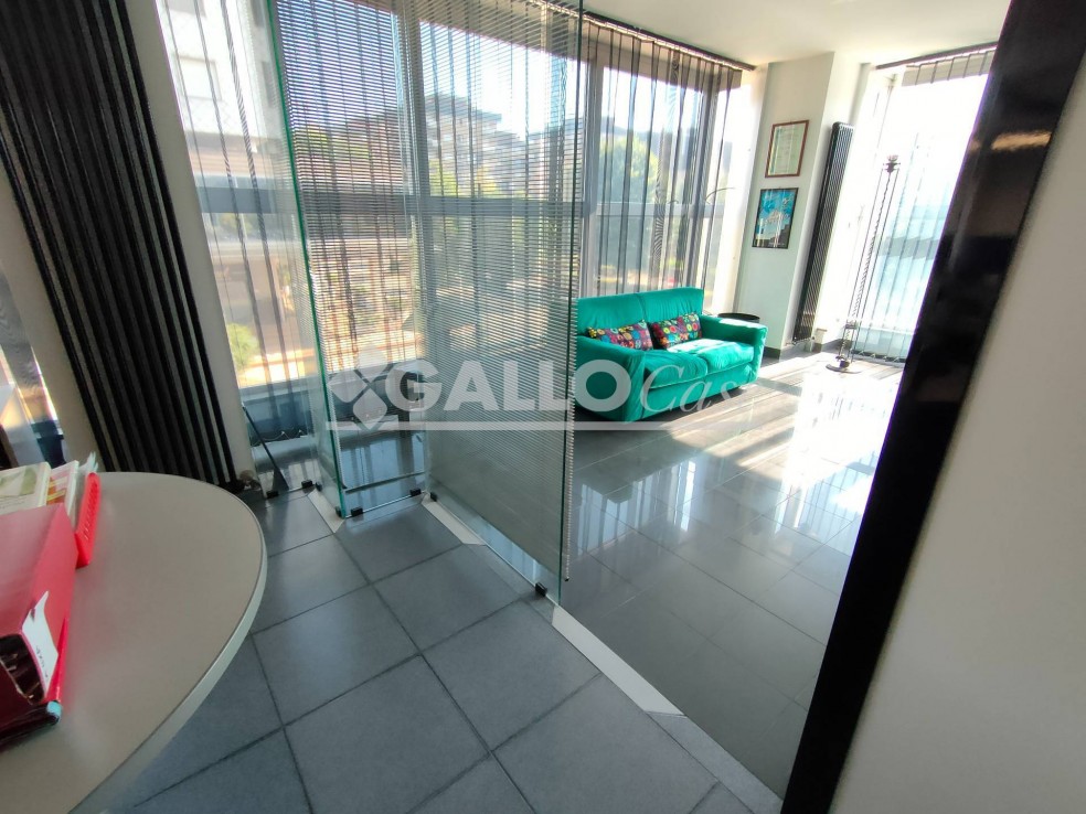 L’unità, in perfetto stato d’uso e finemente rifinito, è dotata di pareti esterne in vetrate a “facciata continua” con elementi strutturali in alluminio ed aperture ad anta ribalta, pareti divisorie interne in cristallo con schermatura mediante tende orientabili.