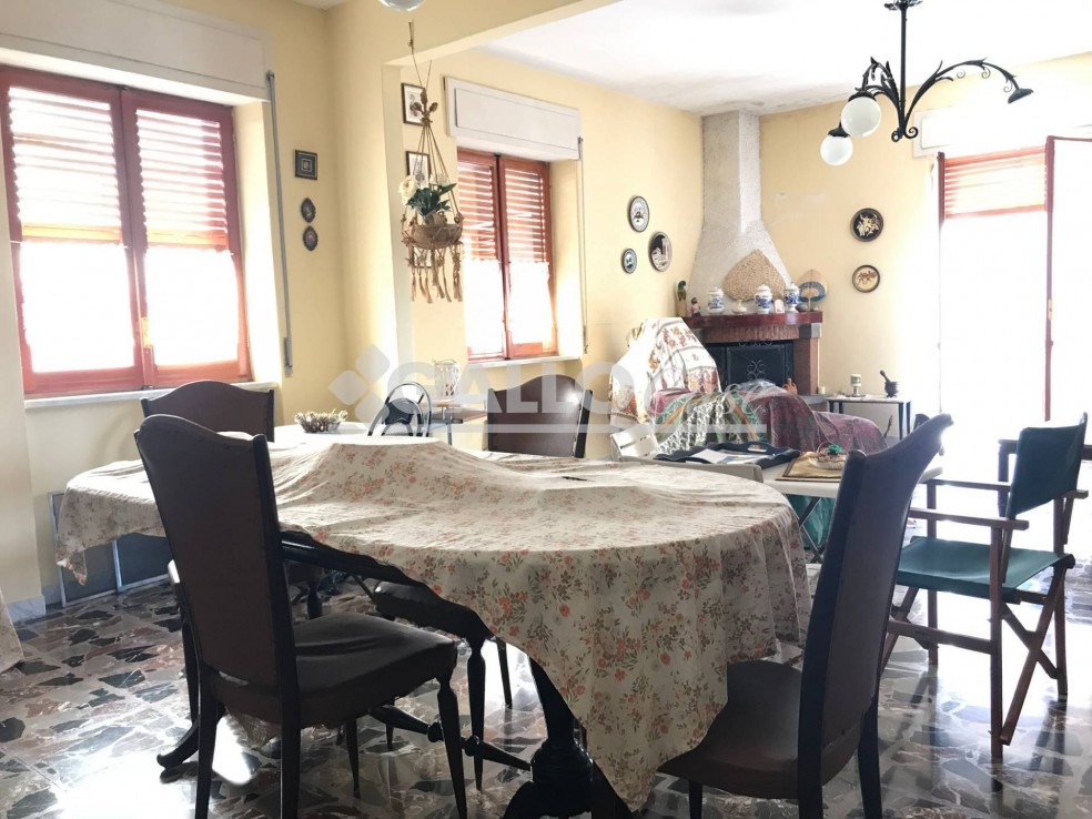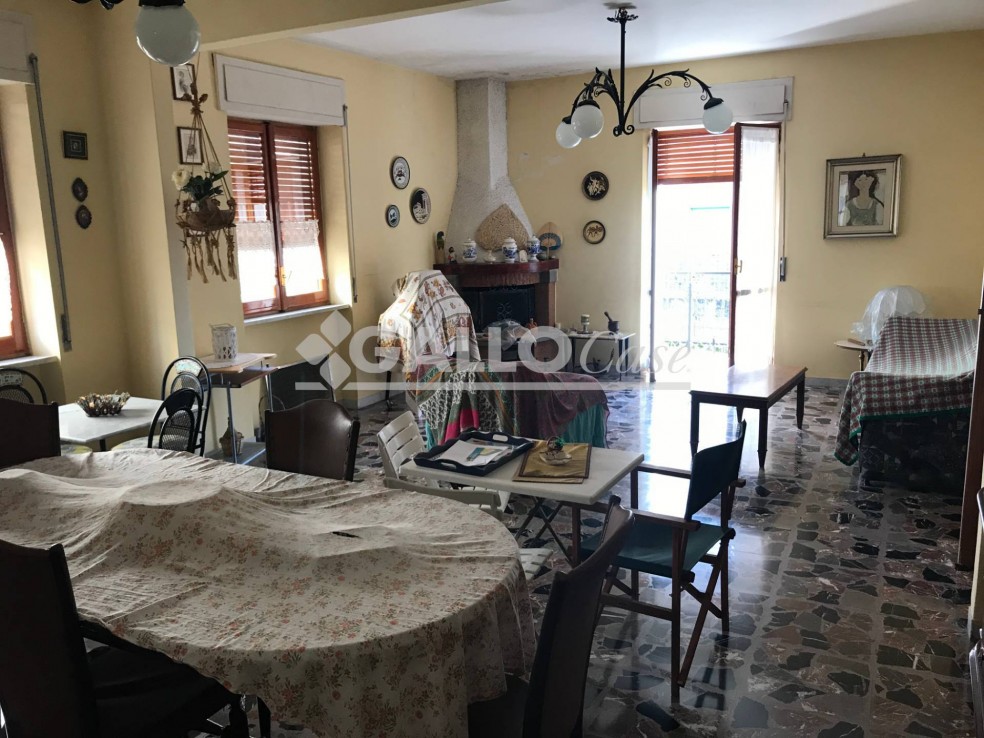 L’abitazione principale si trova al piano primo ed è composta da ingresso, disimpegno, salone doppio con camino, corridoio, cucina abitabile, due camere, bagno e balconi.